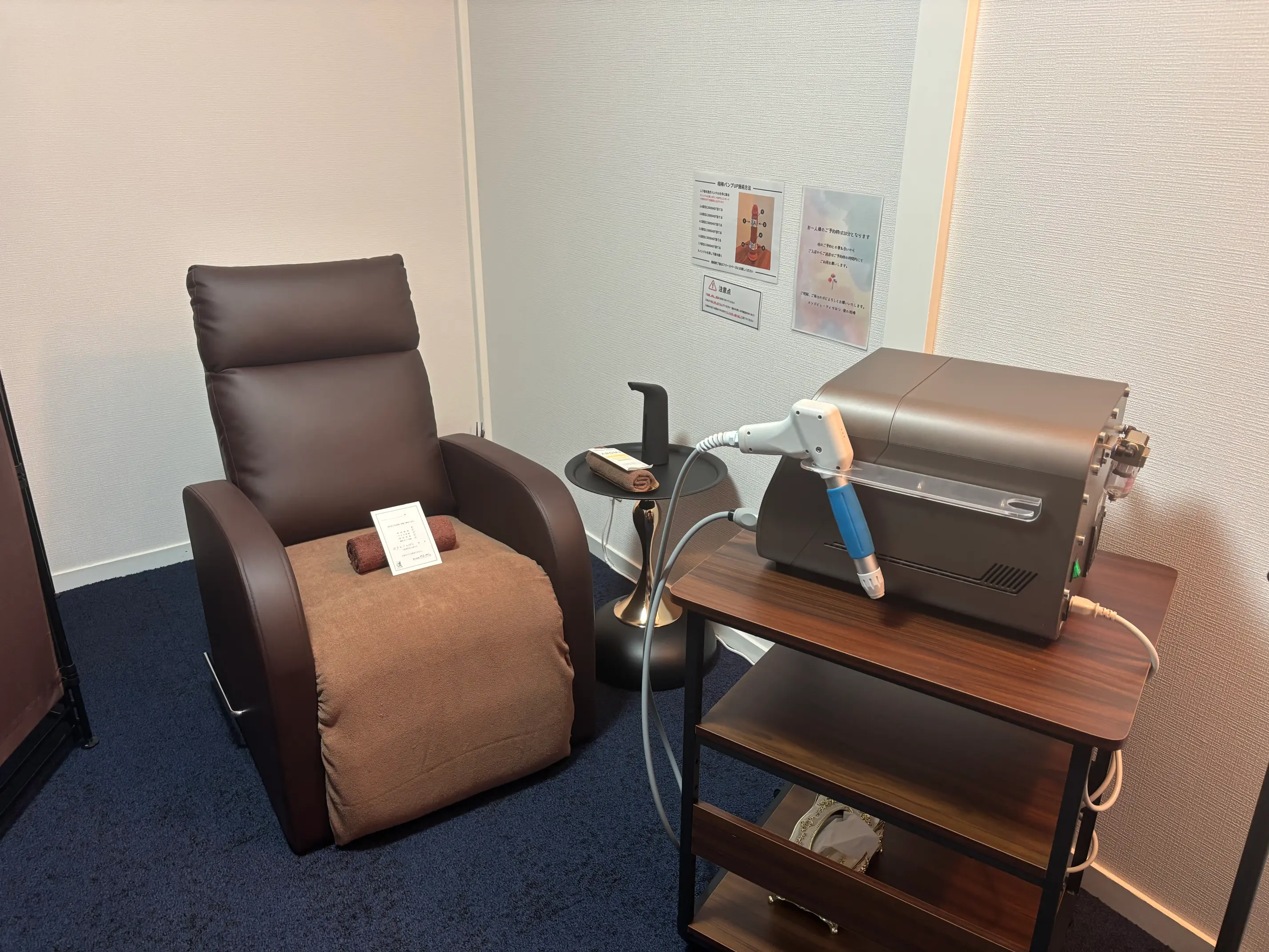諸々のご説明が終わりましたら、スタッフが個室から退出します。自身のペースで施術を開始してください。